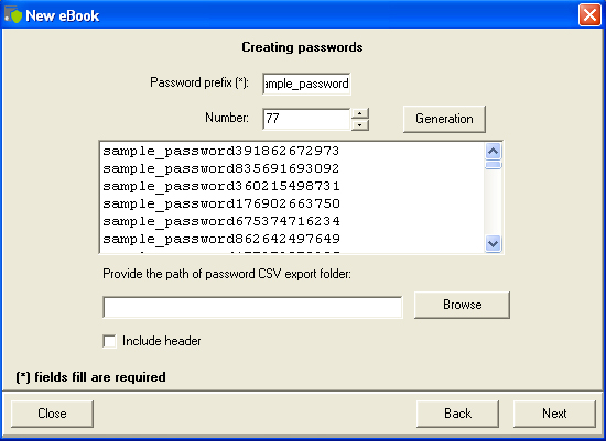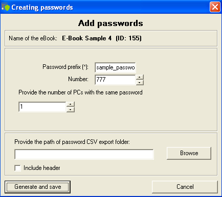 - If the initially generated quantity is not enough, you can provide additional passwords to your e-book or digital infoproduct. This option is also FREE. You can add an unlimited number of passwords.