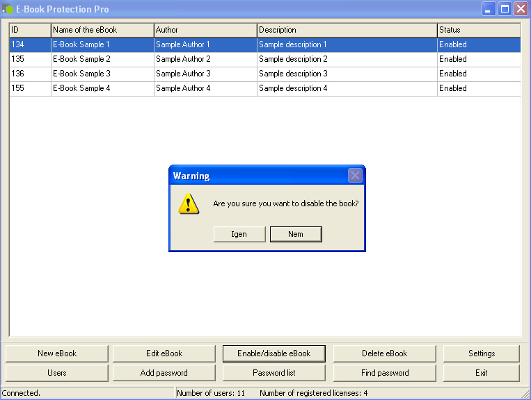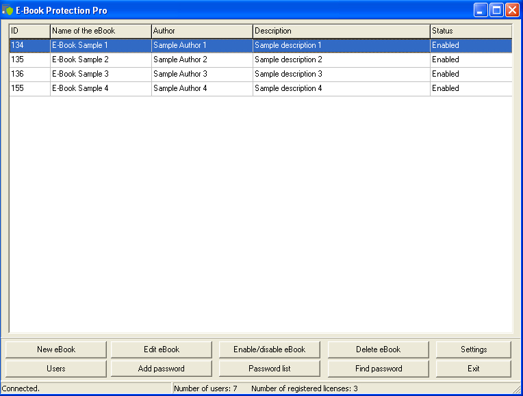 The list of functions and screens is not complete; the software has a lot of other useful functions. The instruction manual bundled with "E-Book Protection Pro" details everything step-by-step.